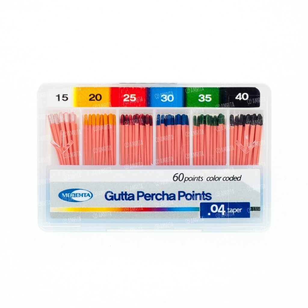 Штифты гуттаперчевые Meta Biomed Медента, для пломбирования корневых каналов, с маркировкой длины, набор №15-40/.04, 60 шт