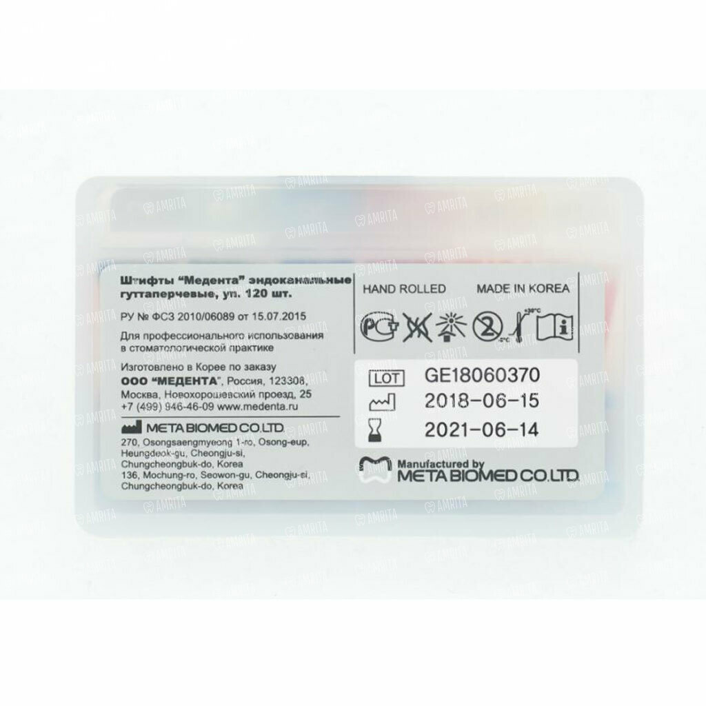 Штифты гуттаперчевые Meta Biomed Медента, с маркировкой длины, №15/.02, 120 шт