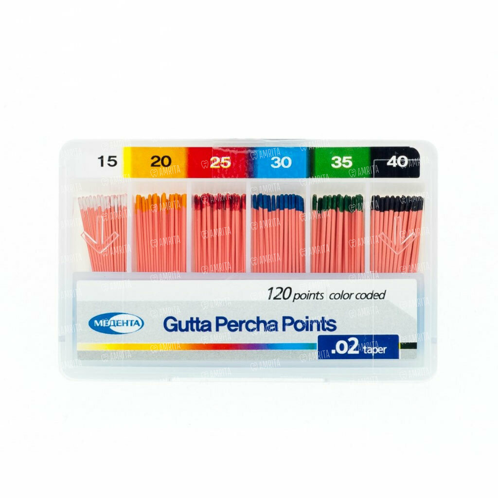 Штифты гуттаперчевые Meta Biomed Медента, с маркировкой длины, набор №15-40/.02, 120 шт