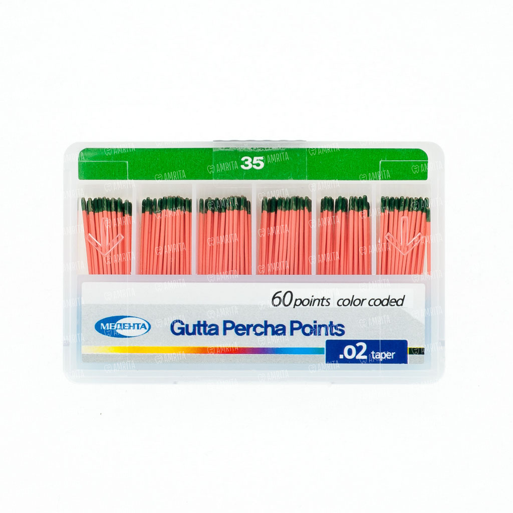 Штифты гуттаперчевые Meta Biomed Медента, для пломбирования корневых каналов, с маркировкой длины, №35/.02, 60 шт
