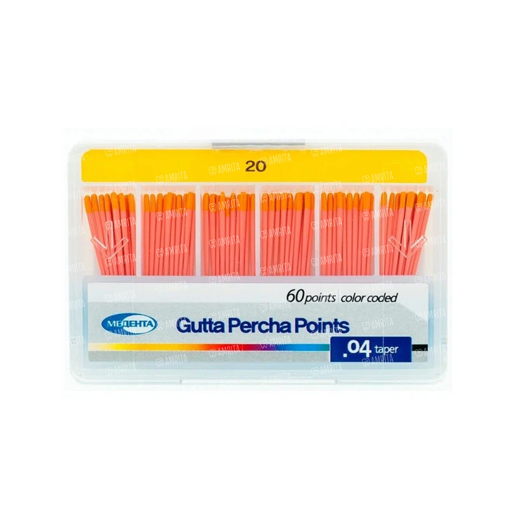 Штифты гуттаперчевые Meta Biomed Медента, для пломбирования корневых каналов, с маркировкой длины, №20/.04, 60 шт