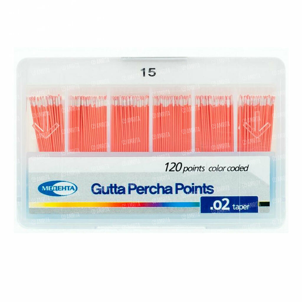 Штифты гуттаперчевые Meta Biomed Медента, с маркировкой длины, №15/.02, 120 шт