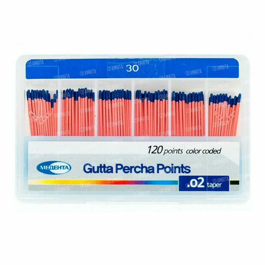 Штифты гуттаперчевые Meta Biomed Медента, для пломбирования корневых каналов, с маркировкой длины, №30/.02, 120 шт