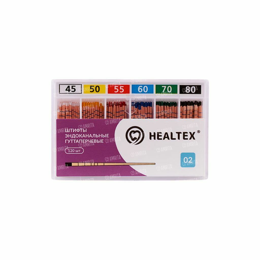 Штифты гуттаперчевые Healtex, для пломбирования корневых каналов, с маркировкой длины, набор №45-80/.02, 120 шт
