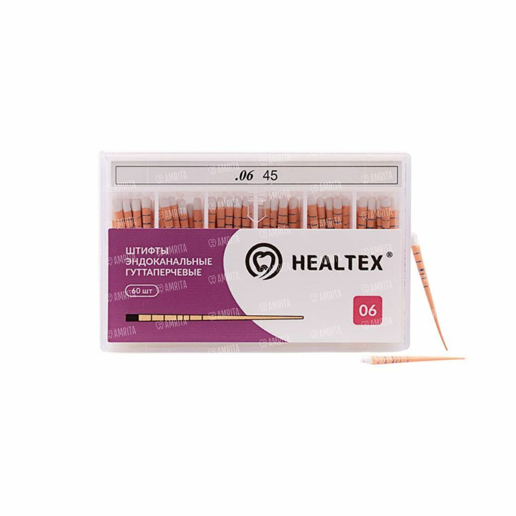 Штифты гуттаперчевые Healtex, для пломбирования корневых каналов, с маркировкой длины, №45/.06, 60 шт
