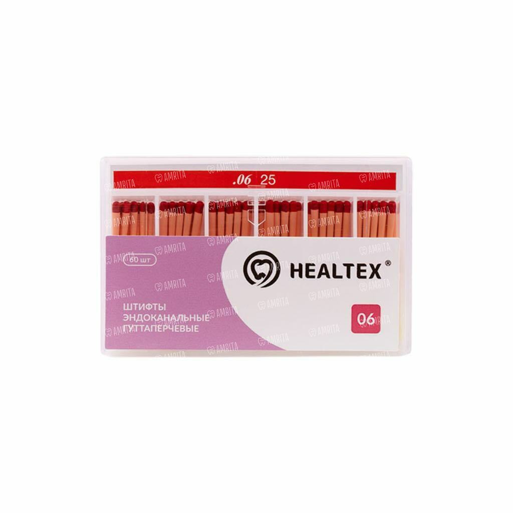 Штифты гуттаперчевые Healtex, для пломбирования корневых каналов, без маркировки длины, №25/.06, 60 шт