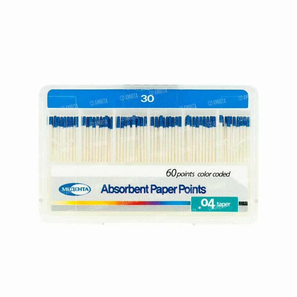 Штифты бумажные Meta Biomed Медента, абсорбирующие, с маркировкой длины, №30/.04, 60 шт