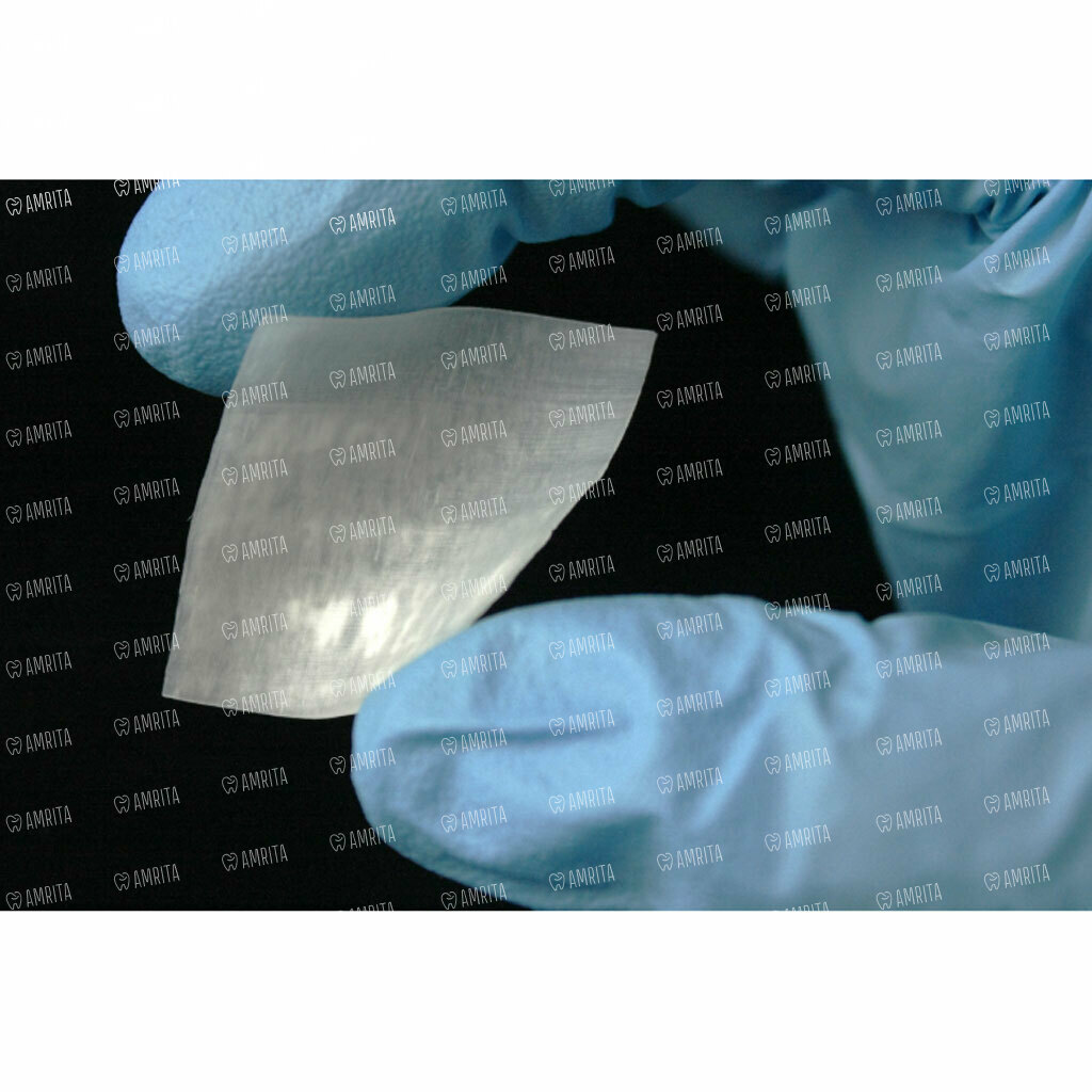 - Гибкость и адаптивность. В сухом виде пластина жесткая, но после смачивания физраствором или кровью она становится гибкой и эластичной. Это позволяет легко адаптировать и моделировать ее по форме любого, даже самого сложного, костного дефекта.