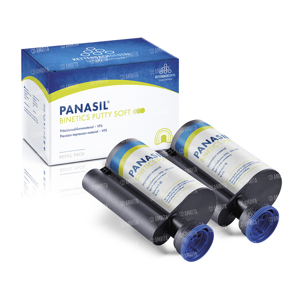 Материал Panasil Binetics Putty Soft используется для оттиска в технике Сэндвич и корректурного двухэтапного оттиска. Также можно применять для оттиска с использованием пленки и функционального формирования края.