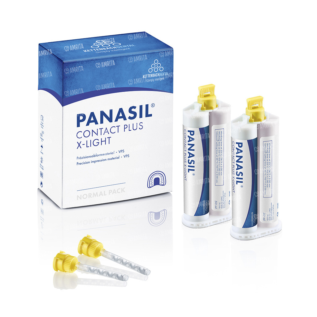 Panasil contact plus X-Light – очень жидкотекучий корригирующий материал фиолетового цвета. Оттискная масса изготовлена на основе А-силикона для получения точных оттисков. Благодаря способности материала возвращаться в исходное состояние с сохранением всех размеров получаются чрезвычайно точные результаты. Наносится с помощью пистолета-дозатора, например, Applyfix 4.
