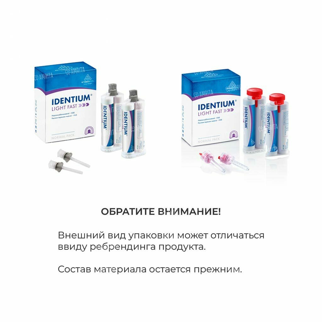 Identium Light - жидкотекучий прецизионный оттискной материал из винилсилоксанэфира, который ввиду своей отличной текучести материал проникает в самые узкие участки борозды, а благодаря чрезвычайным гидрофильным свойствам позволяет получить четкий результат даже в экстремальных ситуациях.