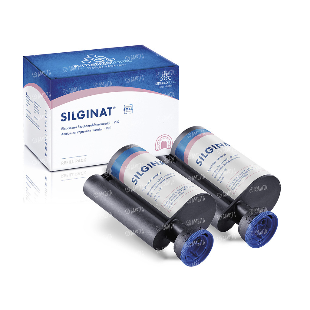 Silginat - среднетекучий, аддитивный, эластомерный А-силикон, выпускаемый в больших картриджах 5:1, специально разработанный для тех областей применения, где обычно используются альгинаты (например, анатомические оттиски).