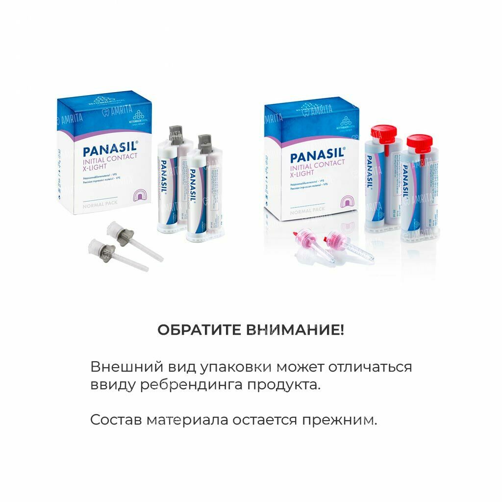 Panasil initial contact X-Light Normal pack - корригирующий материал на основе А-силикона, 2x50 мл + 8 смесителей, NEW