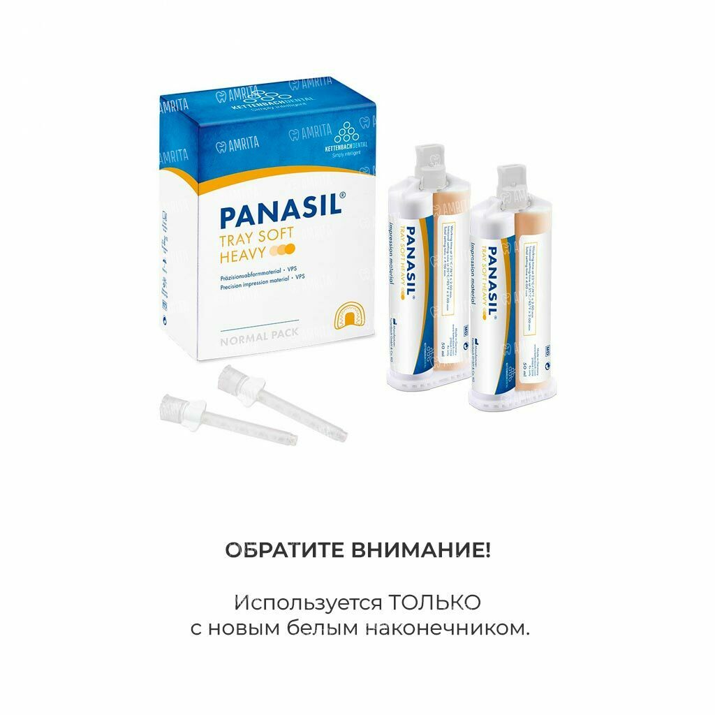 Panasil tray Soft Heavy - вязкотекучий, устойчивый материал для точных оттисков, пониженная конечная твердость, 2x50 мл + 6 смесителей, NEW
