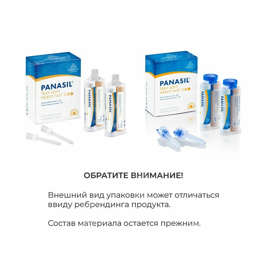 Panasil tray Soft Heavy Fast - вязкотекучий, устойчивый материал на основе А-силикона в больших картриджах 5:1 для точных оттисков. Основными особенностями материала являются пониженная конечная твердость для более легкого извлечения из ротовой полости и короткое время пребывания во рту.