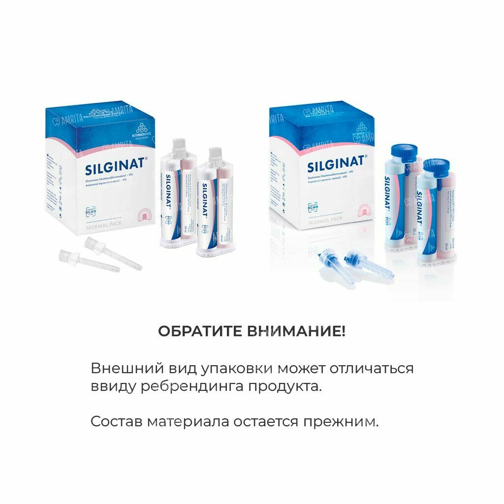 Silginat - среднетекучий, аддитивный, эластомерный А-силикон, специально разработанный для тех областей применения, где обычно используются альгинаты (например, анатомические оттиски).