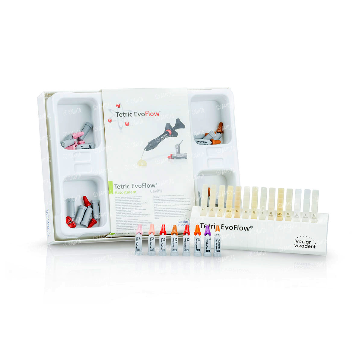 Композитный материал Tetric EvoFlow Assortment — это набор светоотверждаемого, рентгеноконтрастного, текучего наногибридного композита от компании Ivoclar Vivadent. Этот универсальный материал предназначен для широкого спектра показаний, от использования в качестве лайнерной прокладки до выполнения небольших реставраций.