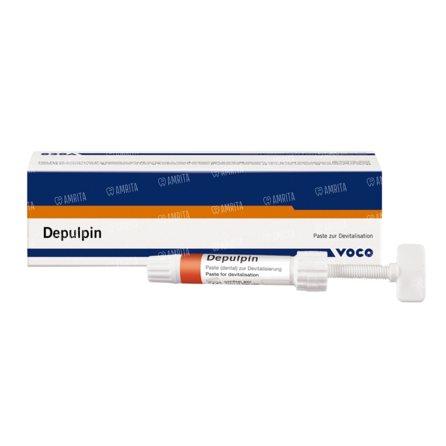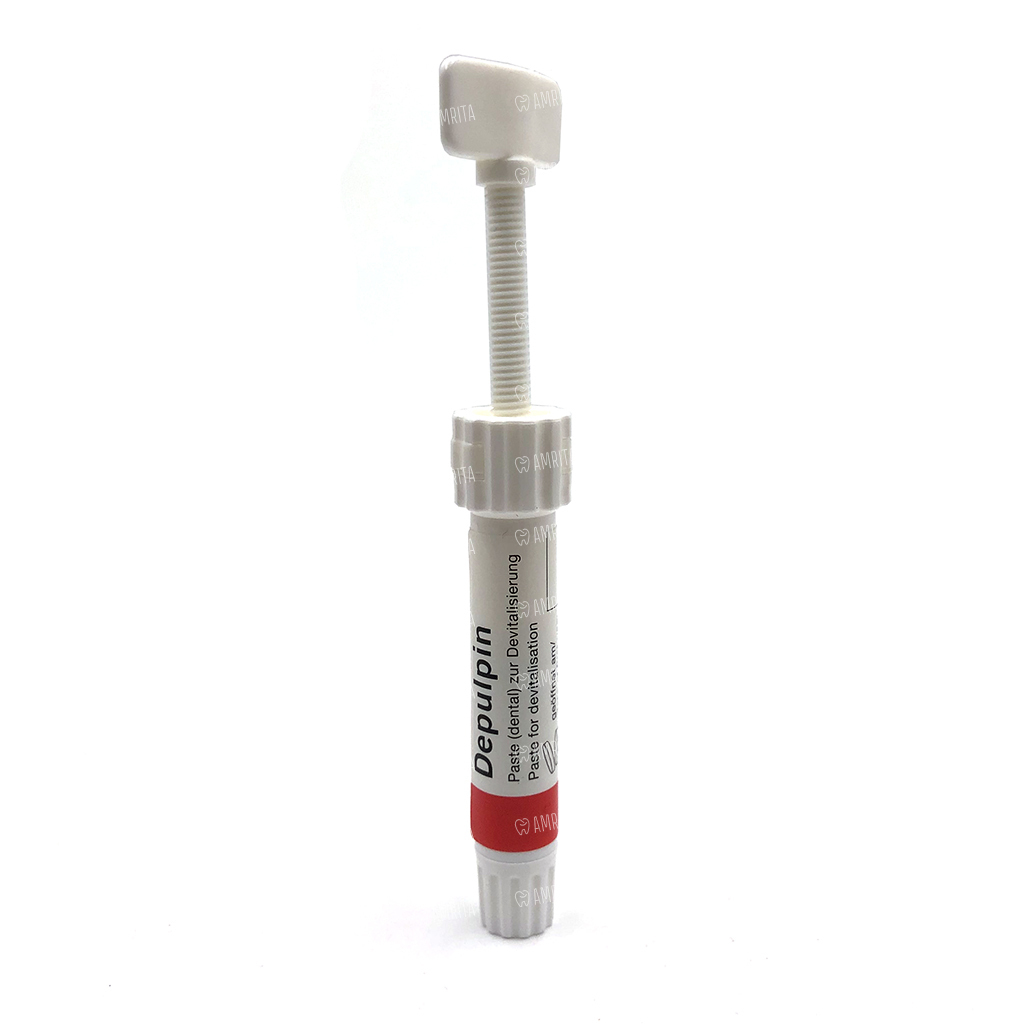 Депульпин (Depulpin) - представляет собой не содержащее мышьяка и применяемое для девитализации пульпы зуба средство, обладающее болеутоляющим и быстрым действием. Пастообразная форма позволяет легко апплицировать препарат.