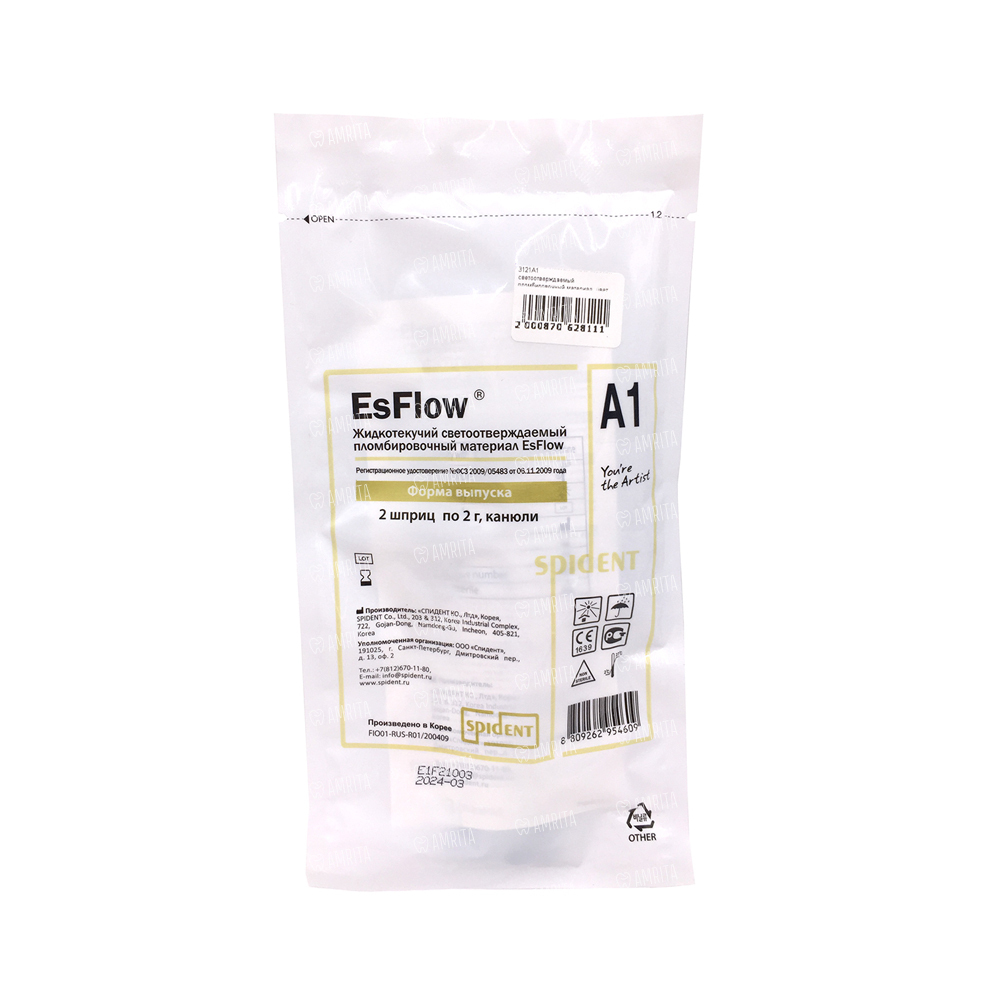 EsFlow — жидкотекучий светоотверждаемый пломбировочный материал, цвет А1, шприц 2 г х 2 шт