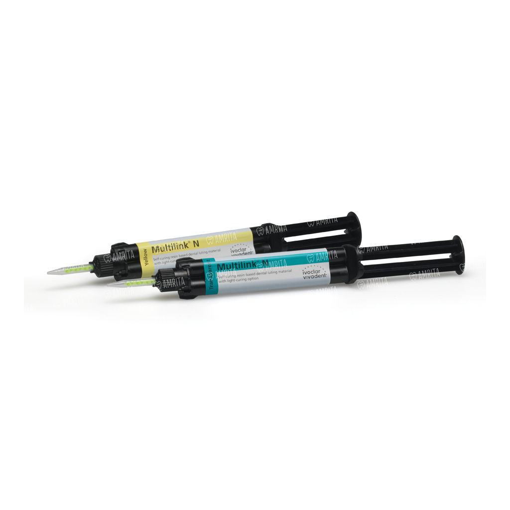 Композитный цемент Multilink N Refill yellow — это универсальная система для адгезивной фиксации от компании Ivoclar Vivadent. Этот самоотверждаемый материал с возможностью световой полимеризации разработан для надежной и долговечной фиксации непрямых реставраций из любых материалов: от металлокерамики до оксида циркония.