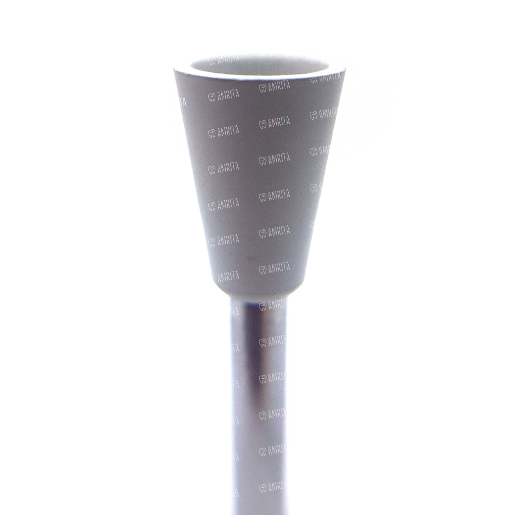 Полир с алмазным зерном P 9665 VF под угловой наконечник от немецкой компании D+Z применяется для трехступенчатой полировки композитов. Чашевидная рабочая часть успешно справляется с различными дефектами на поверхностях ортопедических конструкций. Третья ступень абразива помогает достичь зеркальной полировки коронок и других изделий.