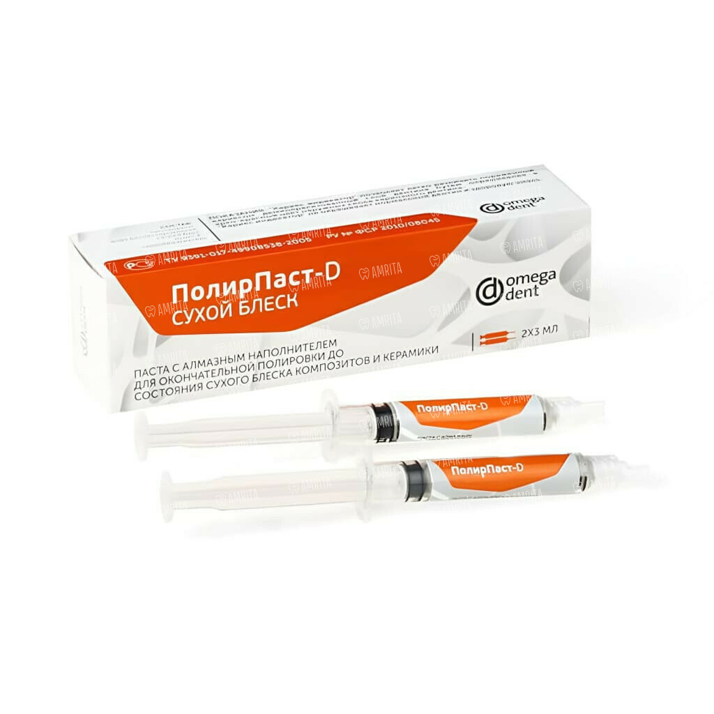 Паста полировочная Omega dent ПолирПаст D, для финишной полировки композитов и керамики до сухого блеска, алмазная, 3 мл х 2