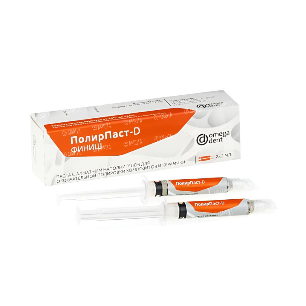 Паста полировочная Omega dent ПолирПаст D финиш, для финишной полировки композитов и керамики, алмазная, 3 мл х 2