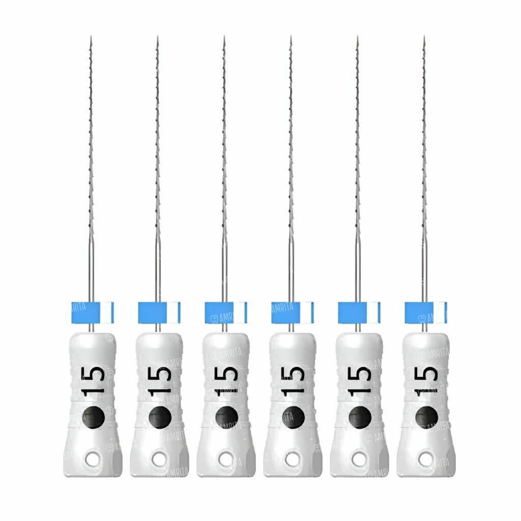 Файлы ручные FKG Н-files, для зондирования, прохождения и очищения каналов, стандартная ручка, 21 мм, №15/.02, сталь, 6 шт