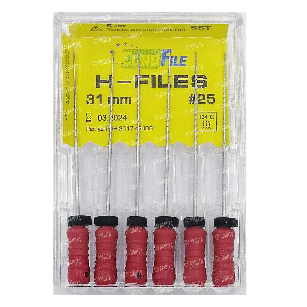 Файлы ручные Eurofile H-Files, для расширения и выравнивания корневого канала, 31 мм, №25/.02, сталь, 6 шт