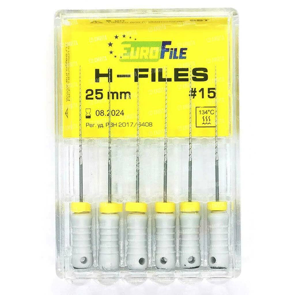 Файлы ручные Eurofile H-Files, для расширения и выравнивания корневого канала, 25 мм, №15/.02, сталь, 6 шт