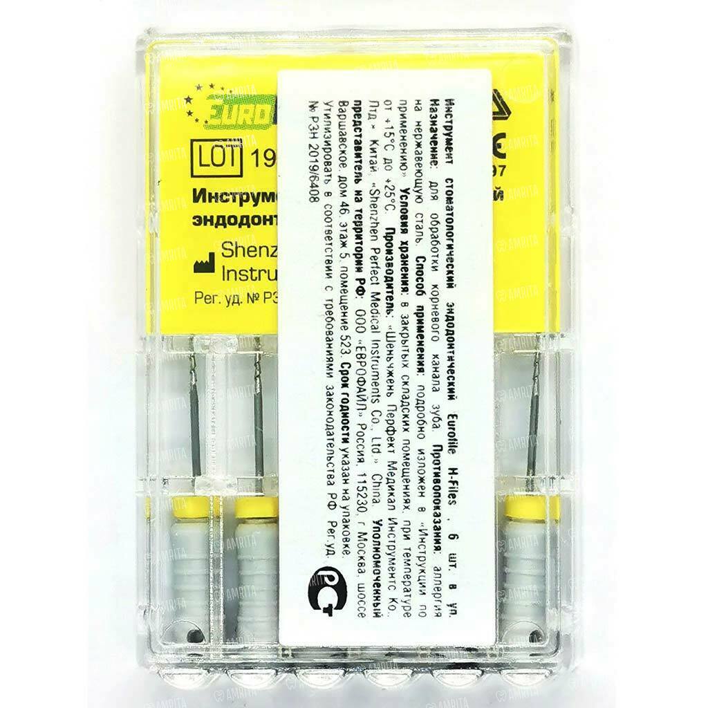 Файлы ручные Eurofile H-Files, для расширения и выравнивания корневого канала, 25 мм, №20/.02, сталь, 6 шт