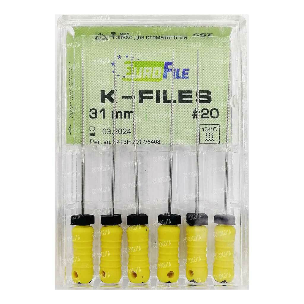 Файлы ручные Eurofile K-Files, для прохождения и расширения корневых каналов, 31 мм, №20/.02, сталь, 6 шт