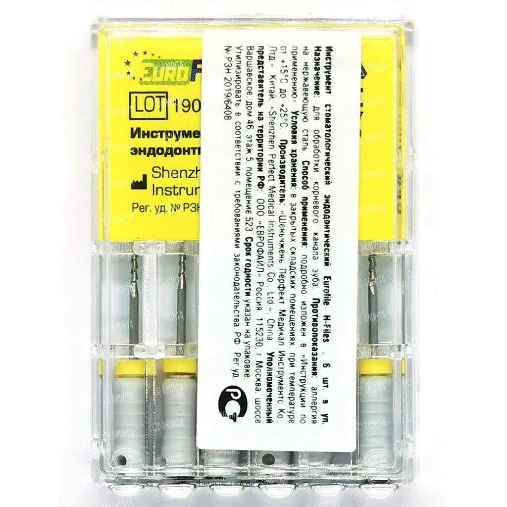 Файлы ручные Eurofile H-Files, для расширения и выравнивания корневого канала, 25 мм, №06/.02, сталь, 6 шт