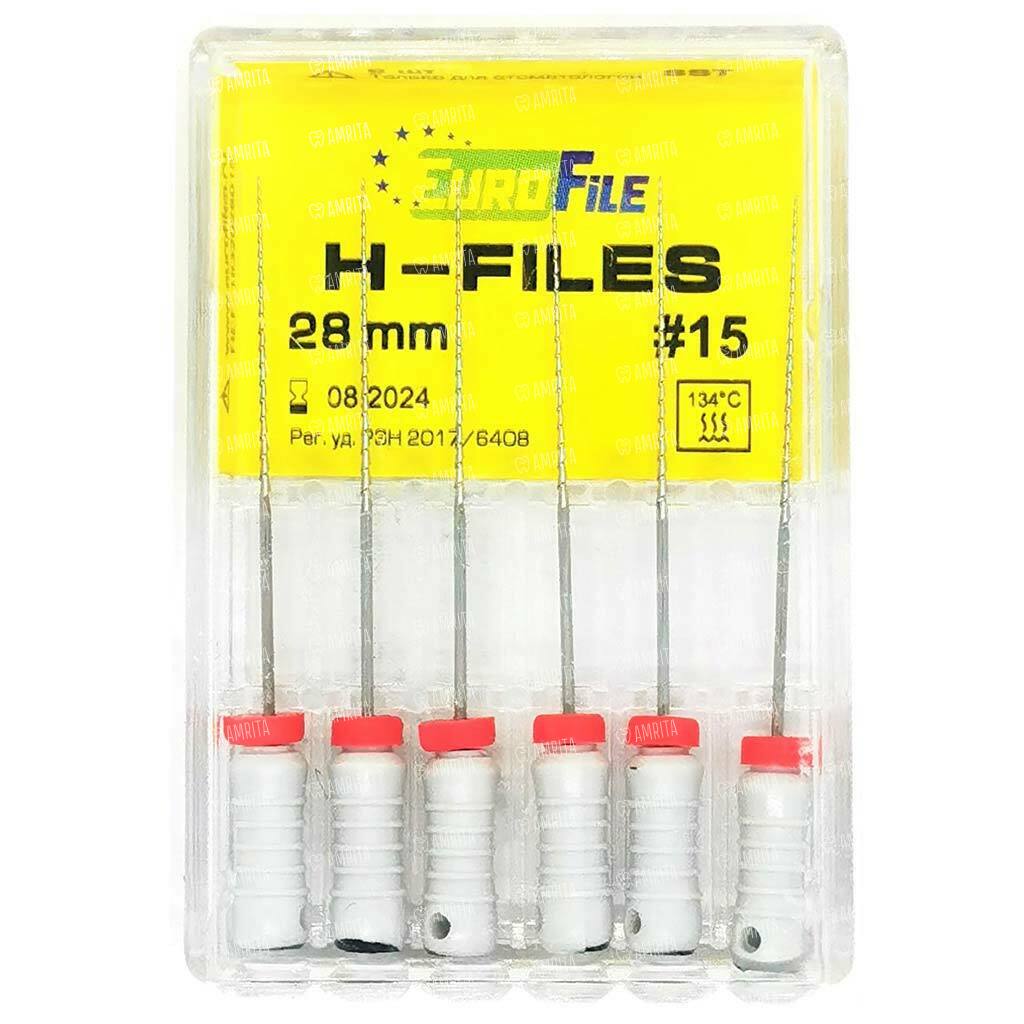 Файлы ручные Eurofile H-Files, для расширения и выравнивания корневого канала, 28 мм, №15/.02, сталь, 6 шт
