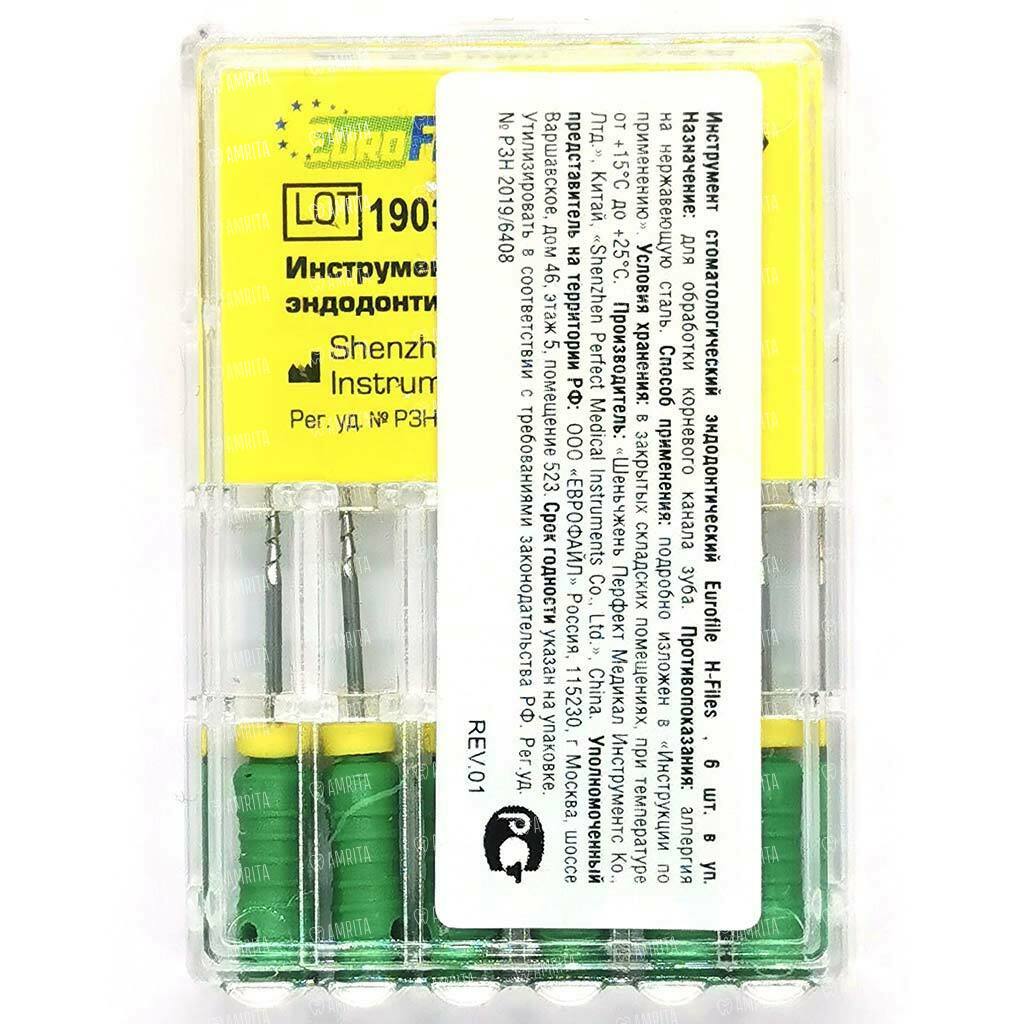 Файлы ручные Eurofile H-Files, для расширения и выравнивания корневого канала, 25 мм, №06/.02, сталь, 6 шт
