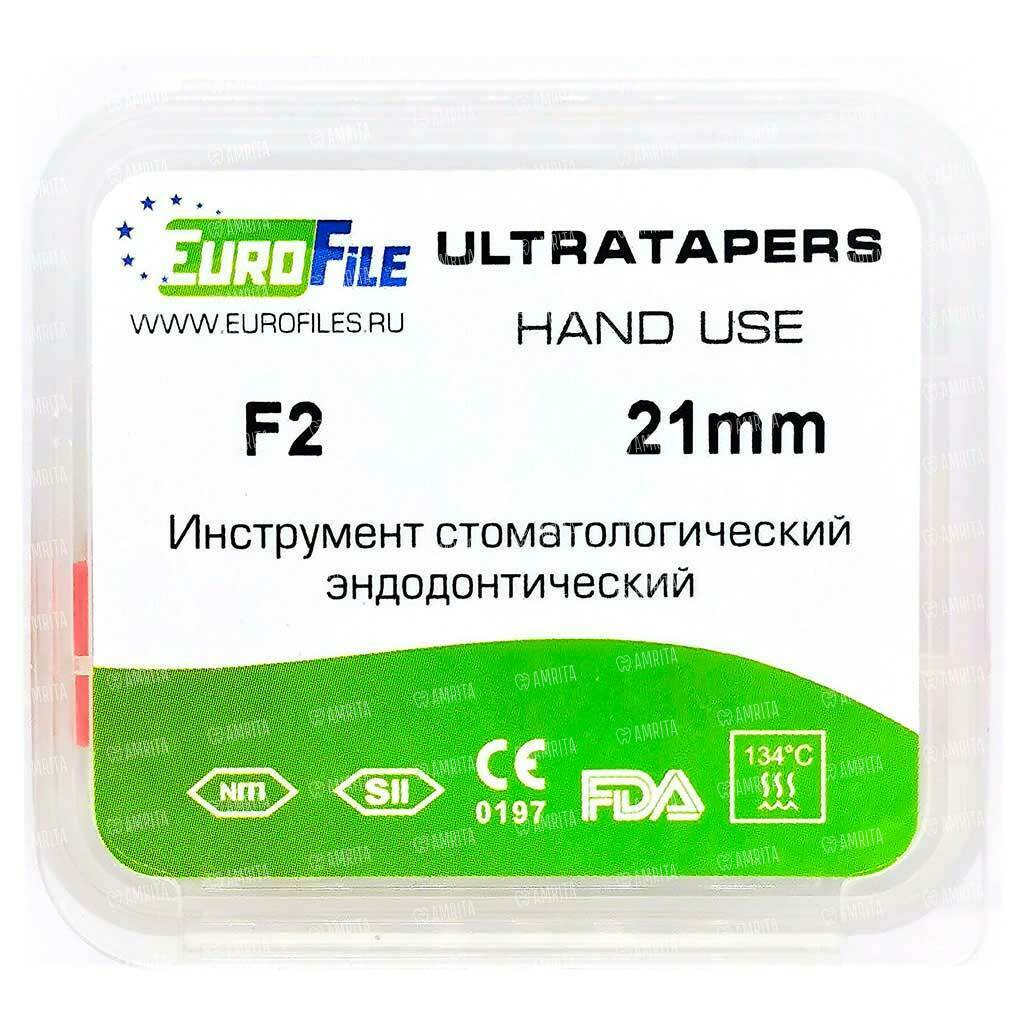 Файлы ручные Eurofile Ultratapers, для обработки корневого канала, 21 мм, №F2, никель-титан, 6 шт