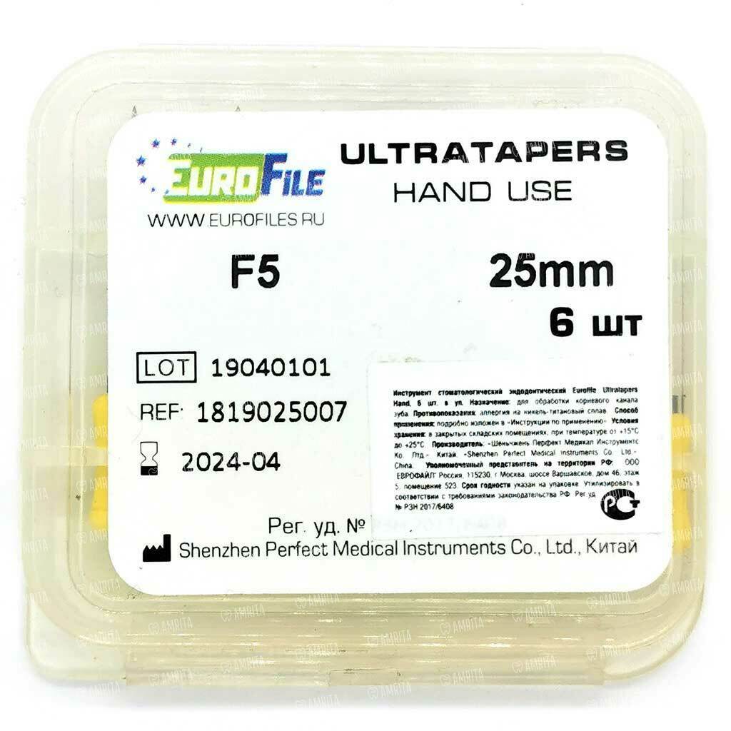 Файлы ручные Eurofile Ultratapers, для обработки корневого канала, 25 мм, №F5, никель-титан, 6 шт