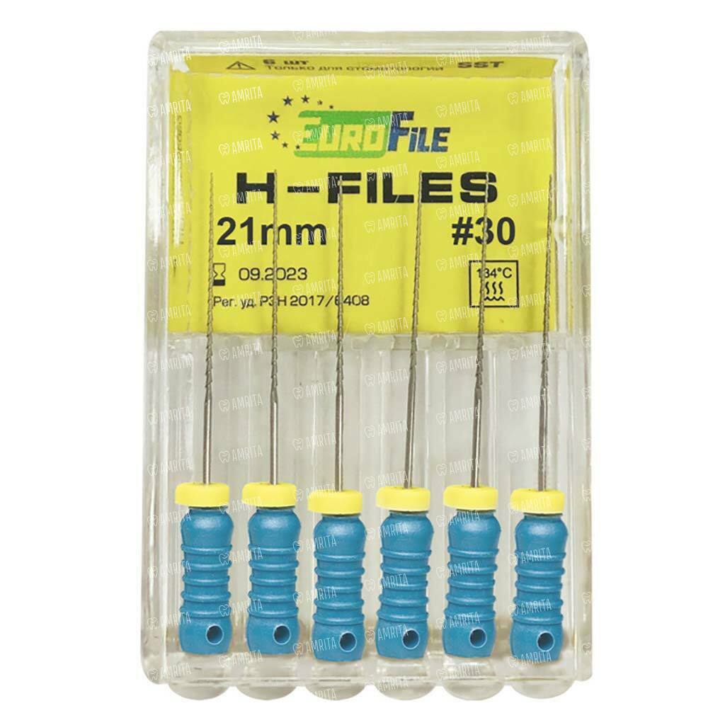 Файлы ручные Eurofile H-Files, для расширения и выравнивания корневого канала, 21 мм, №30/.02, сталь, 6 шт