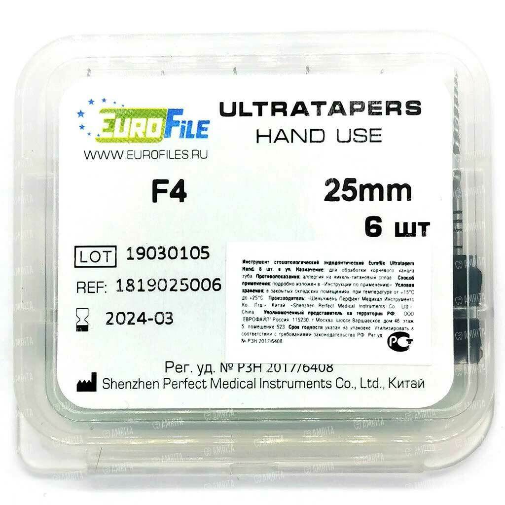 Файлы ручные Eurofile Ultratapers, для обработки корневого канала, 25 мм, №F4, никель-титан, 6 шт