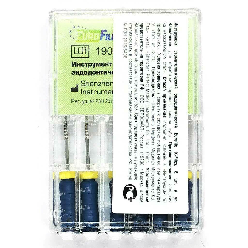 Файлы ручные Eurofile K-Files, для прохождения и расширения корневых каналов, 25 мм, №25/.02, сталь, 6 шт
