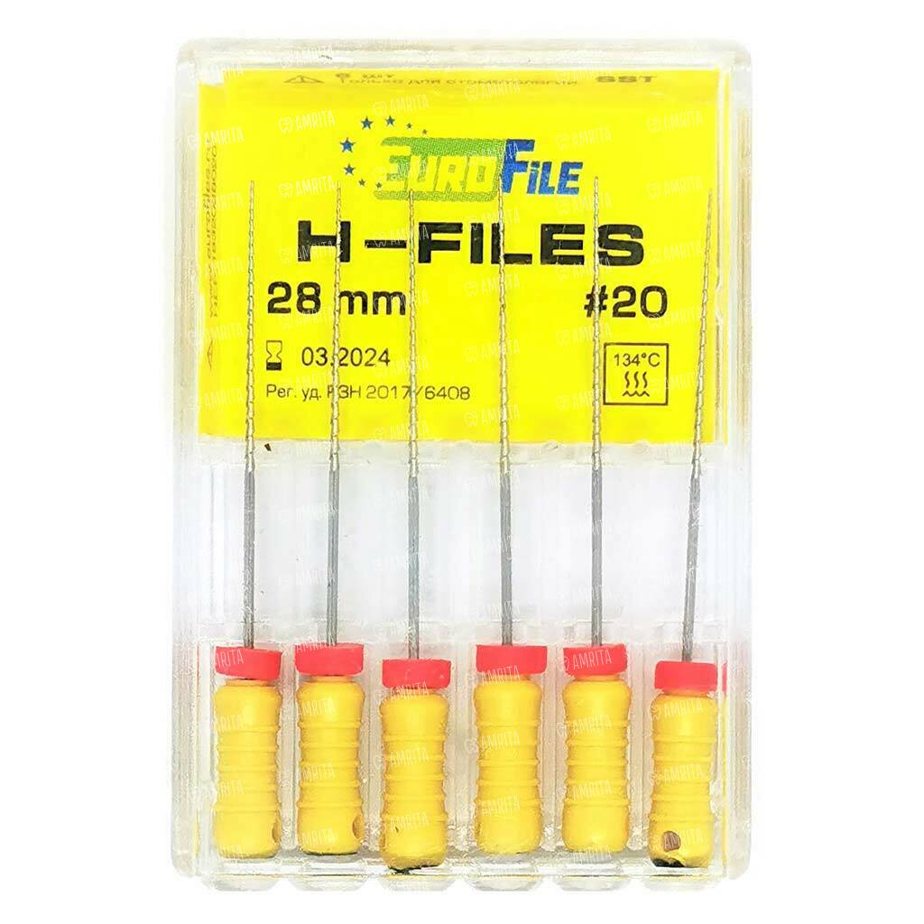 Файлы ручные Eurofile H-Files, для расширения и выравнивания корневого канала, 28 мм, №20/.02, сталь, 6 шт