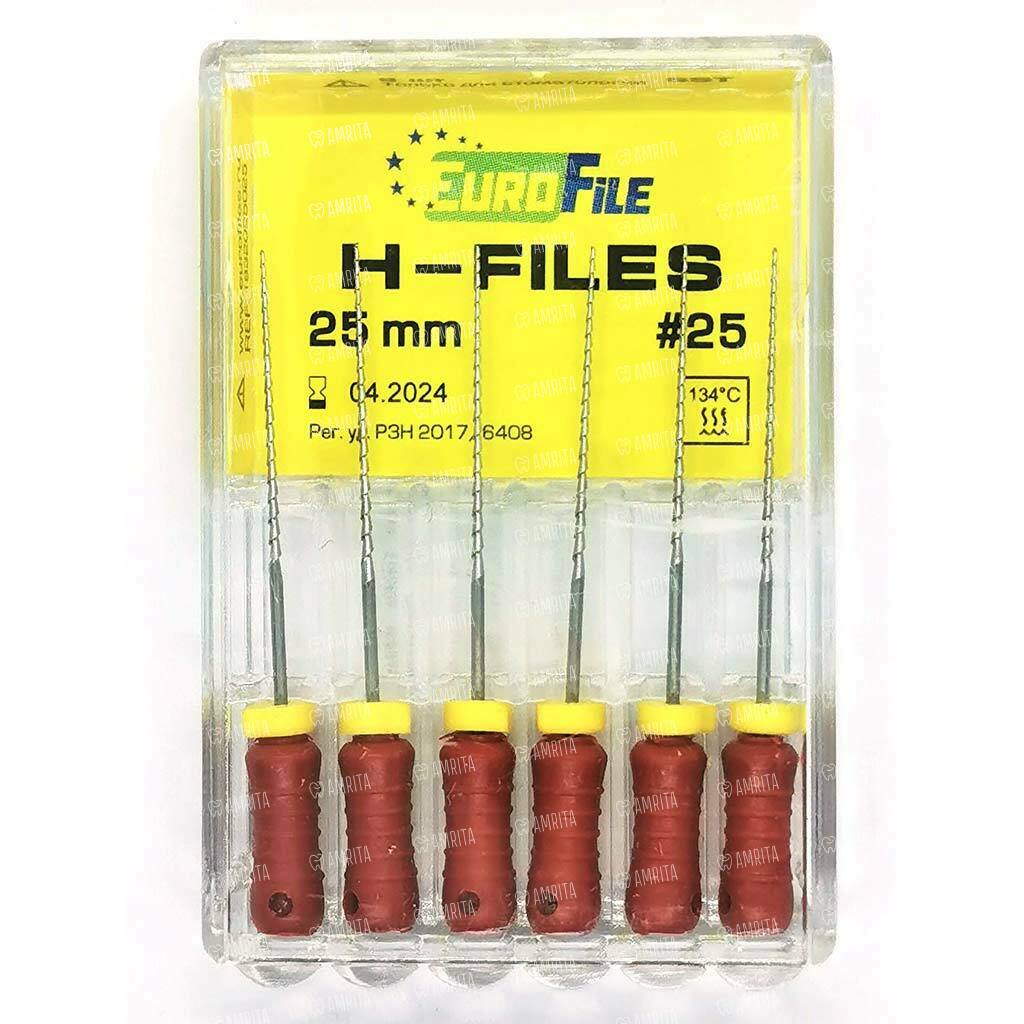 Файлы ручные Eurofile H-Files, для расширения и выравнивания корневого канала, 25 мм, №25/.02, сталь, 6 шт