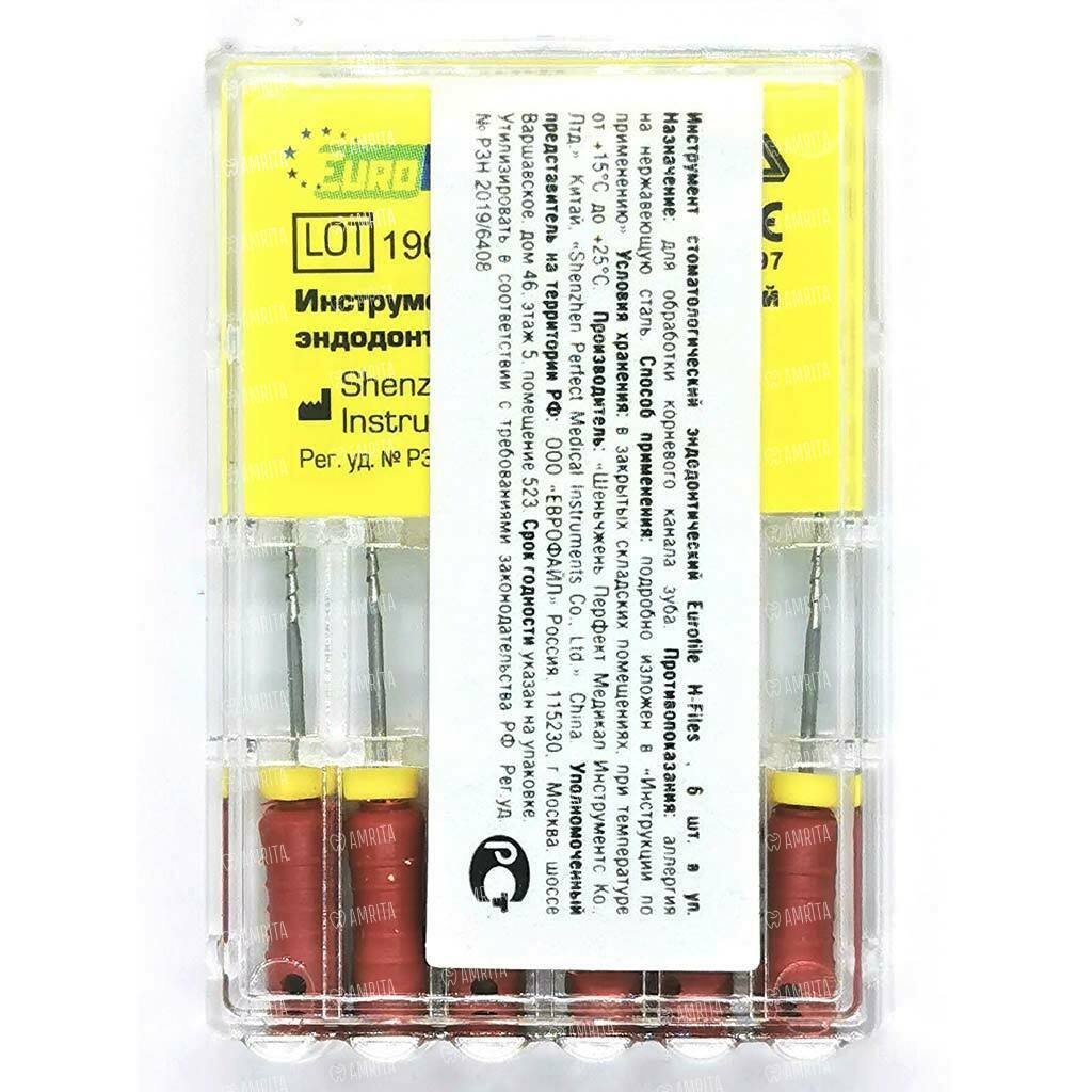 Файлы ручные Eurofile H-Files, для расширения и выравнивания корневого канала, 25 мм, №20/.02, сталь, 6 шт