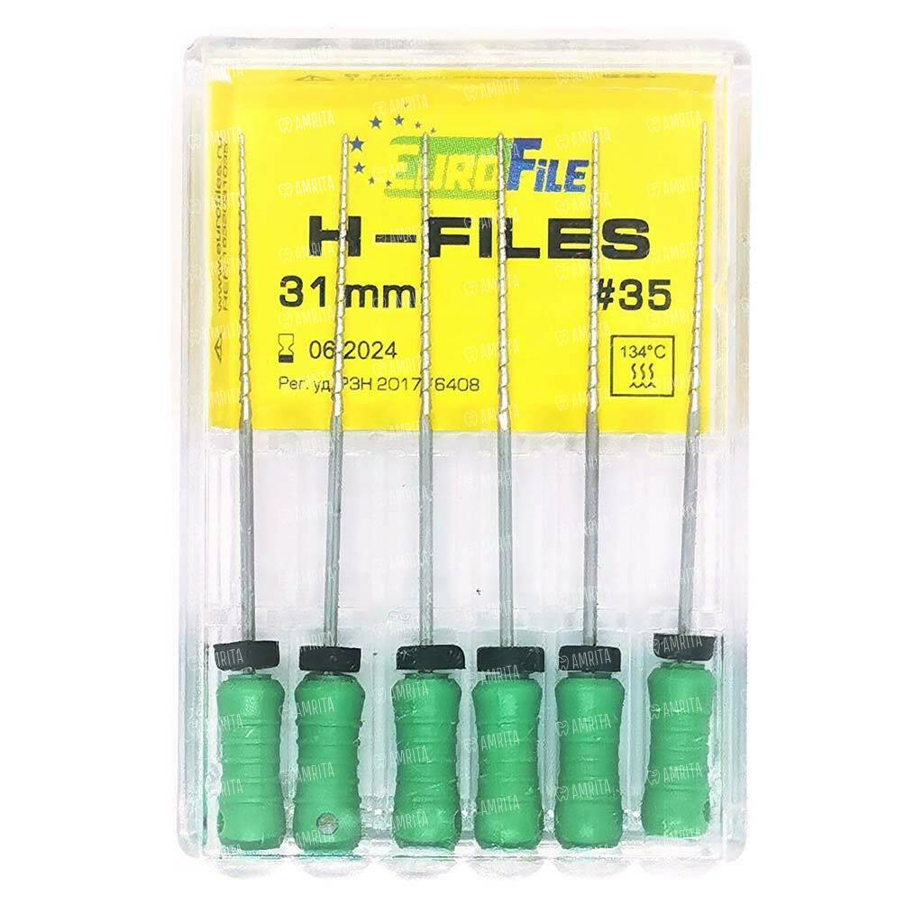 Файлы ручные Eurofile H-Files, для расширения и выравнивания корневого канала, 31 мм, №35/.02, сталь, 6 шт