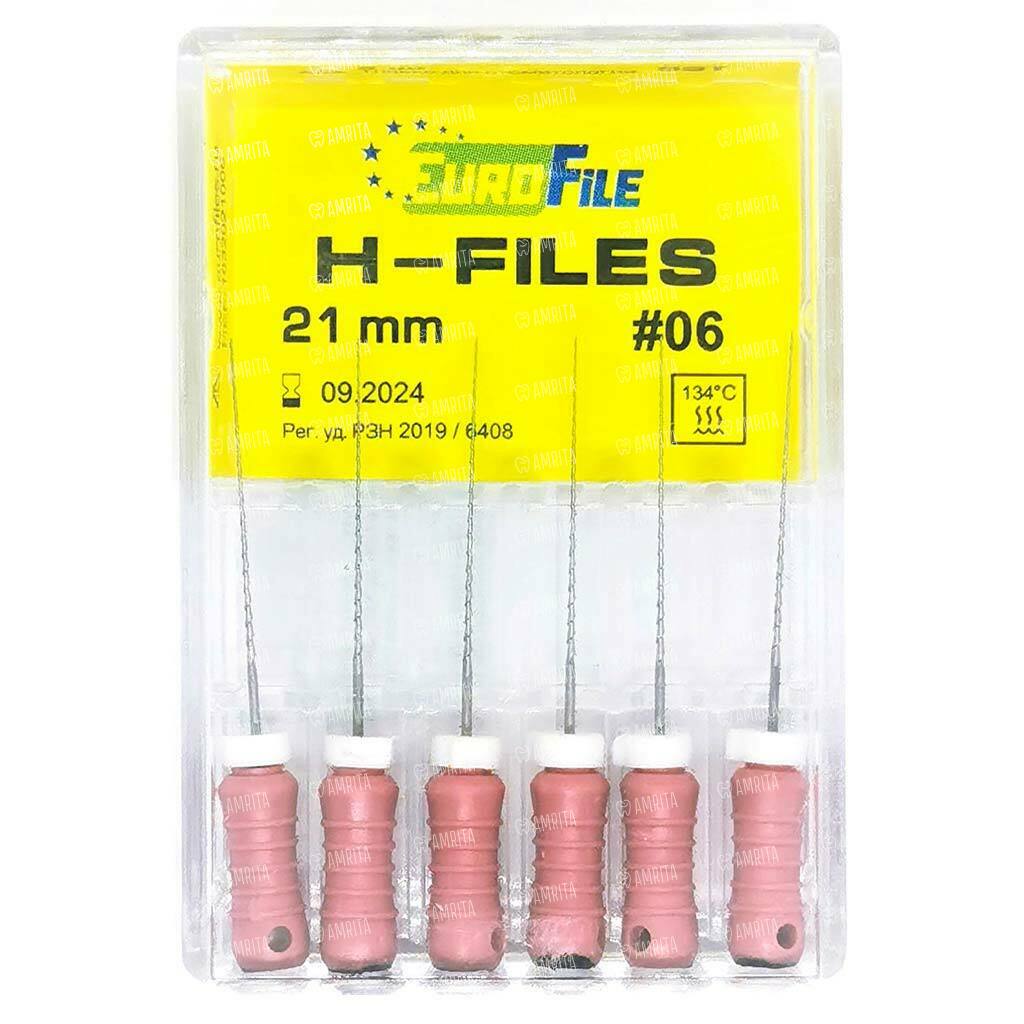 Файлы ручные Eurofile H-Files, для расширения и выравнивания корневого канала, 21 мм, №06/.02, сталь, 6 шт