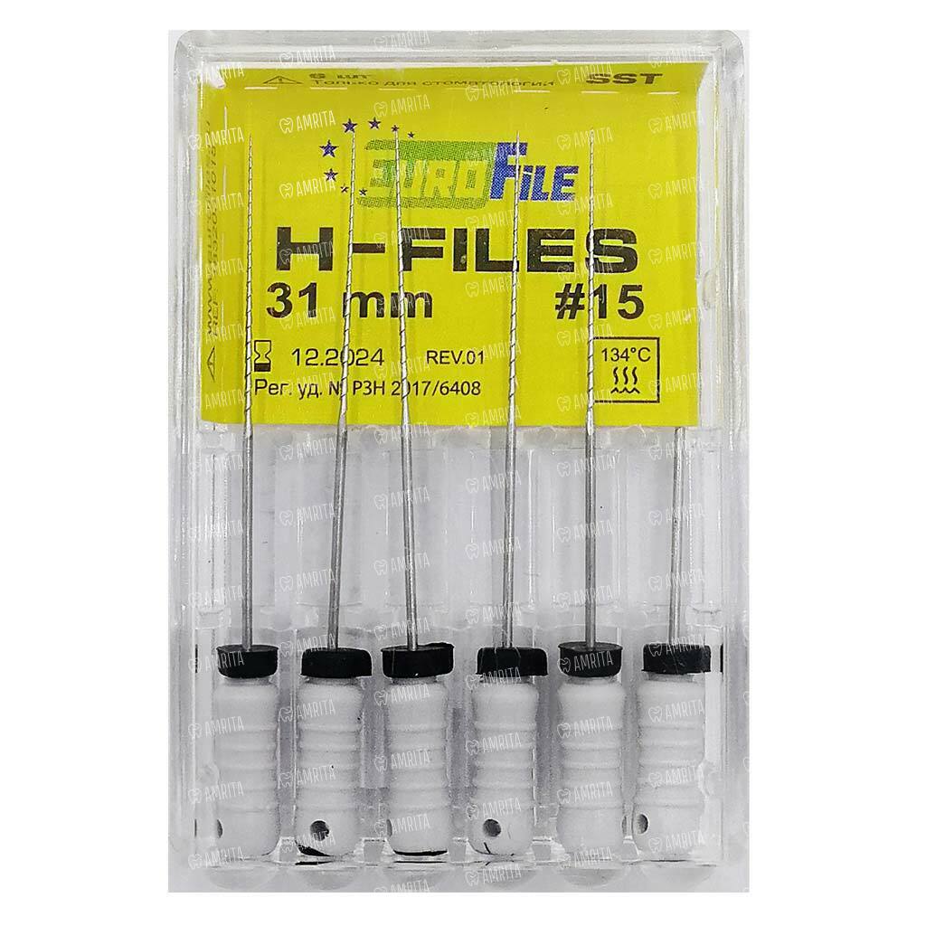 Файлы ручные Eurofile H-Files, для расширения и выравнивания корневого канала, 31 мм, №15/.02, сталь, 6 шт