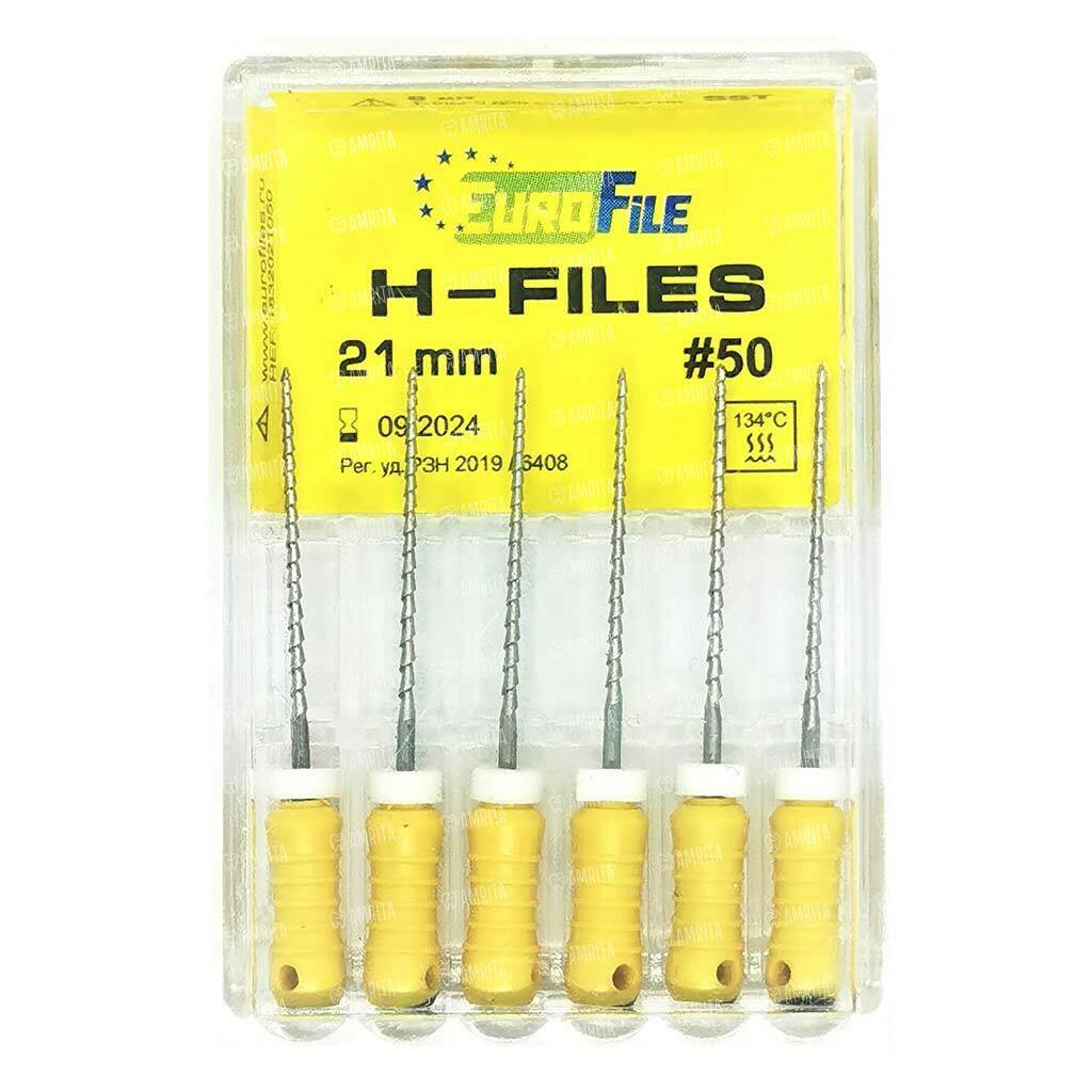 Файлы ручные Eurofile H-Files, для расширения и выравнивания корневого канала, 21 мм, №50/.02, сталь, 6 шт