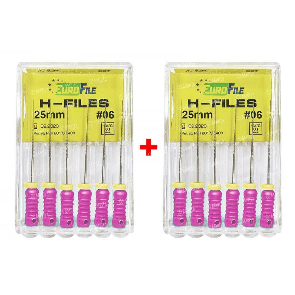 Файлы ручные Eurofile H-Files, для расширения и выравнивания корневого канала, 25 мм, №06/.02, сталь, 6 шт х 2