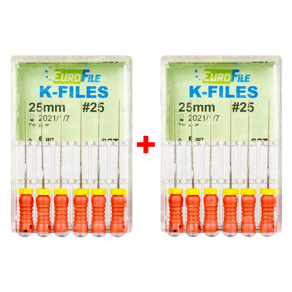 Файлы ручные Eurofile H-Files, для расширения и выравнивания корневого канала, 25 мм, №25/.02, сталь, 6 шт х 2