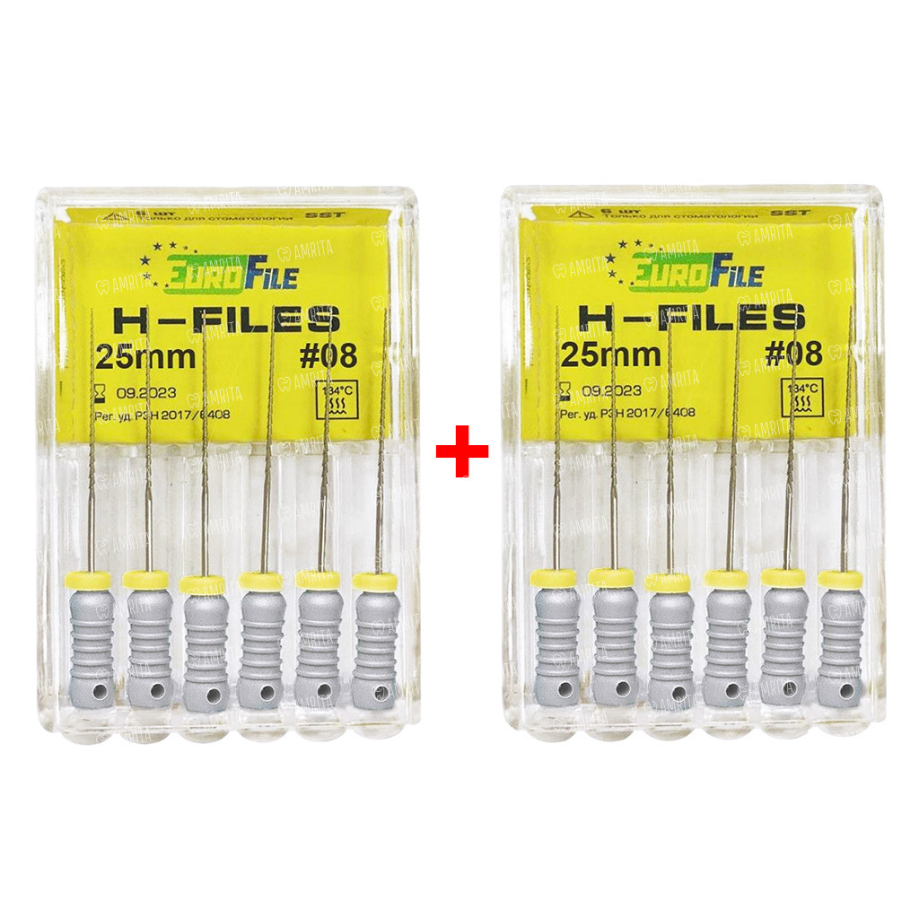 Файлы ручные Eurofile H-Files, для расширения и выравнивания корневого канала, 25 мм, №08/.02, сталь, 6 шт х 2